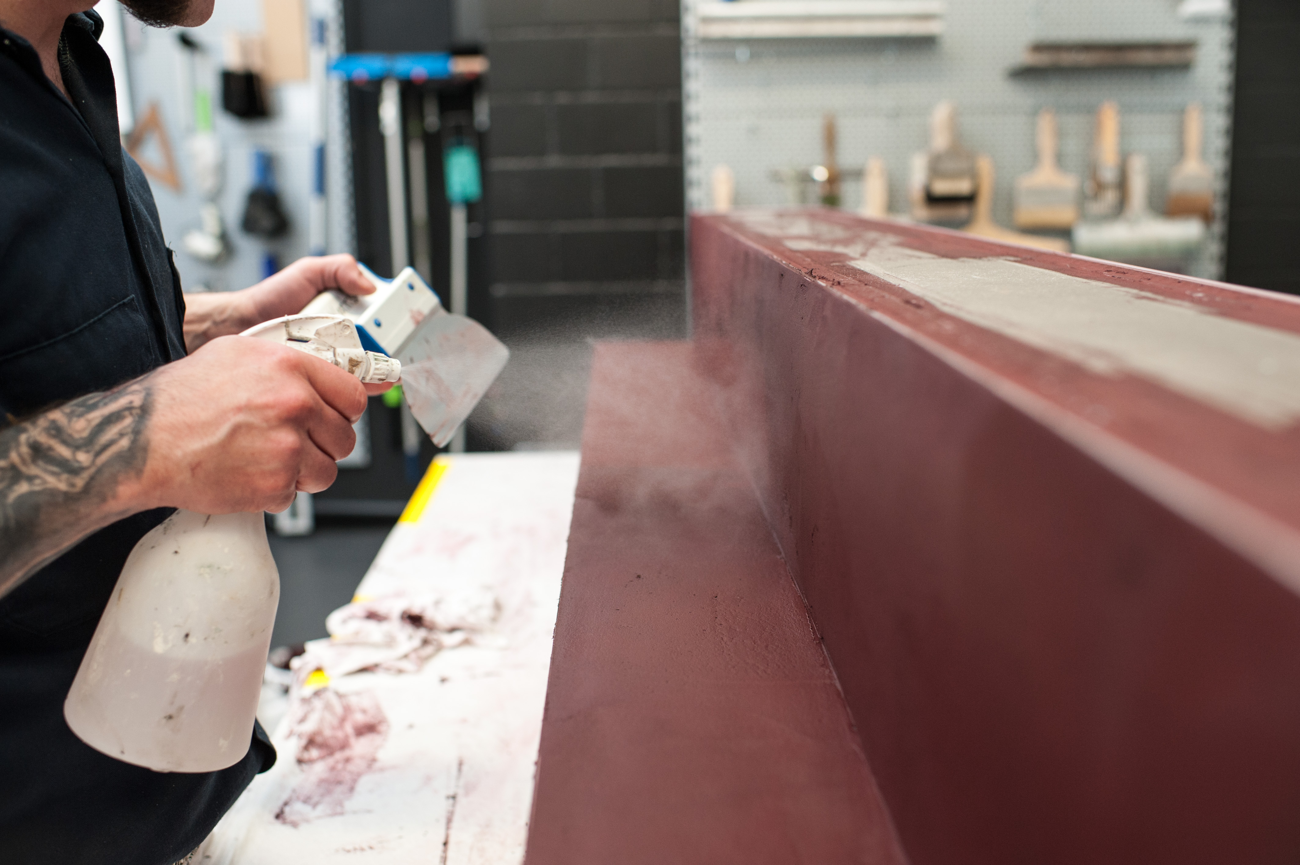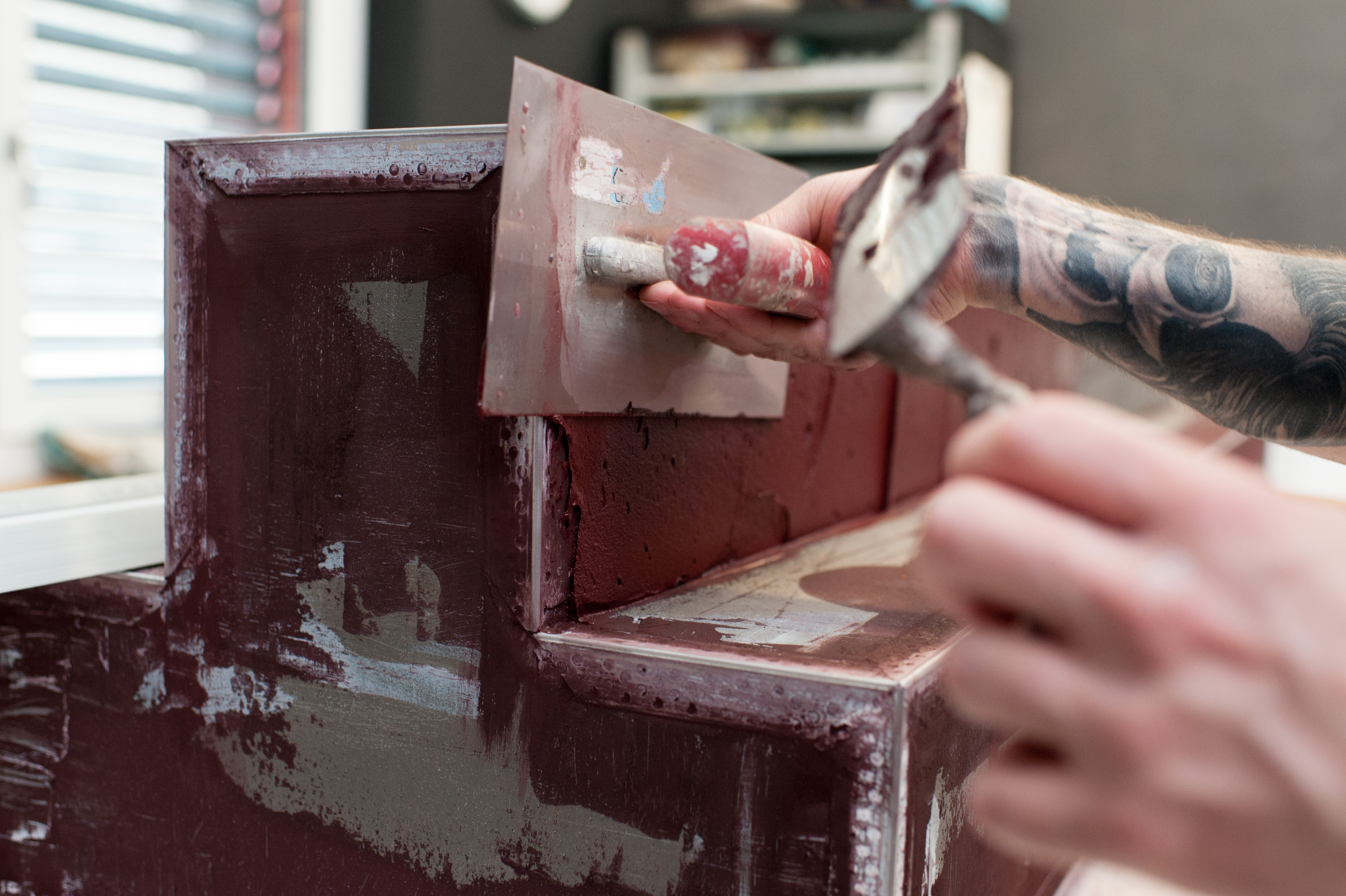 Bei diesem Objekt entschieden wir uns für Terra di Pietra, veredelt durch eine spezielle Hochglanzlackierung, wie sie im Autodesign verwendet wird.