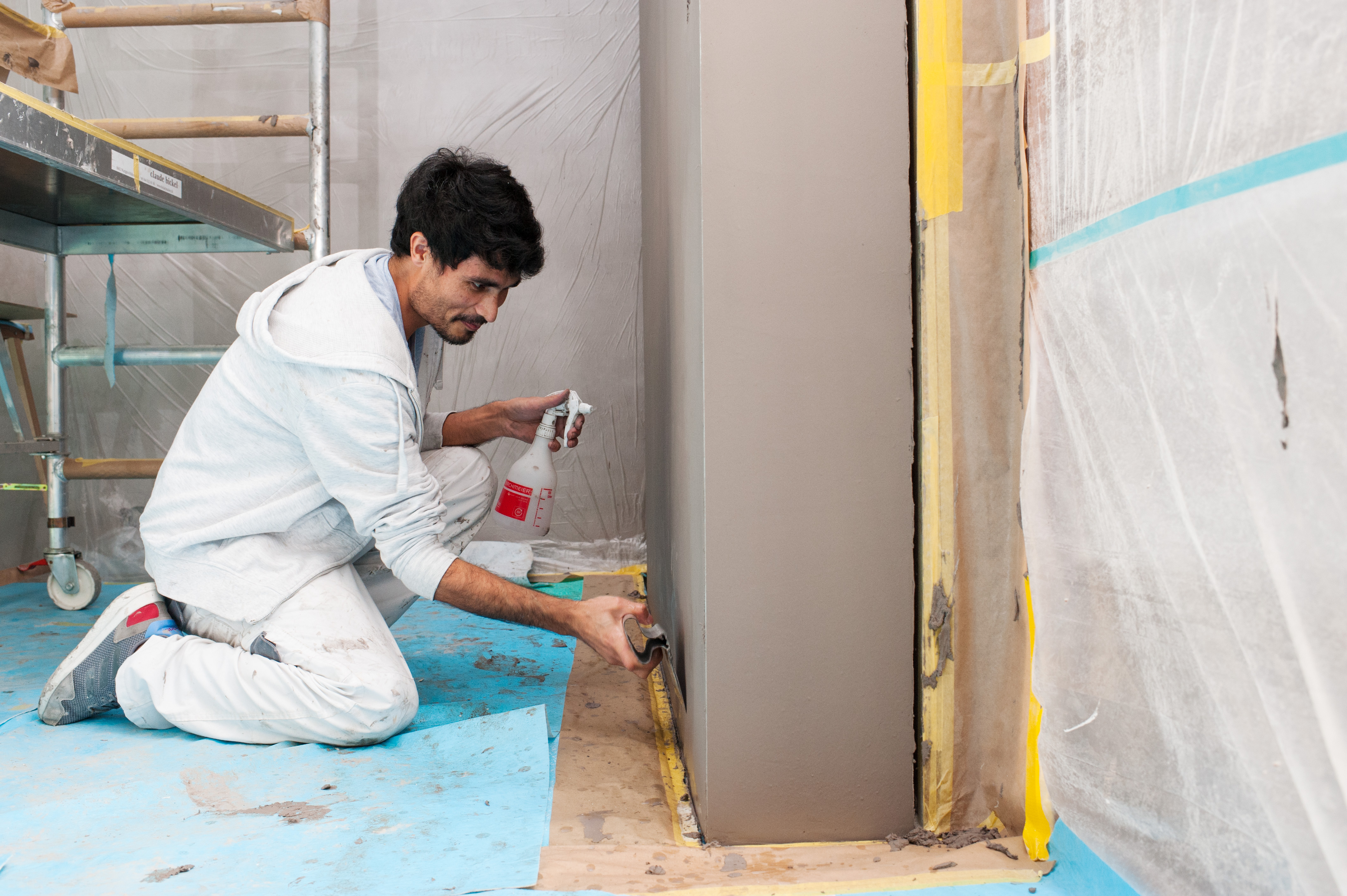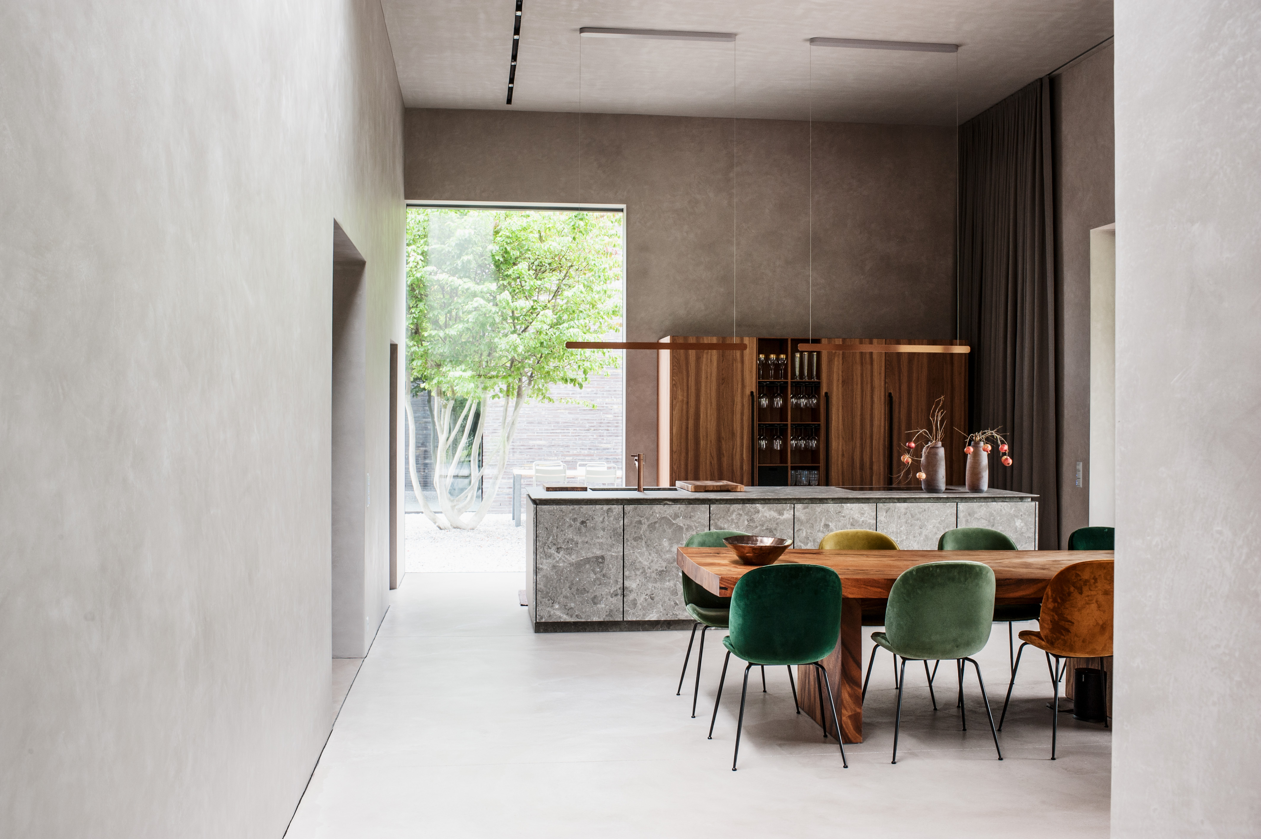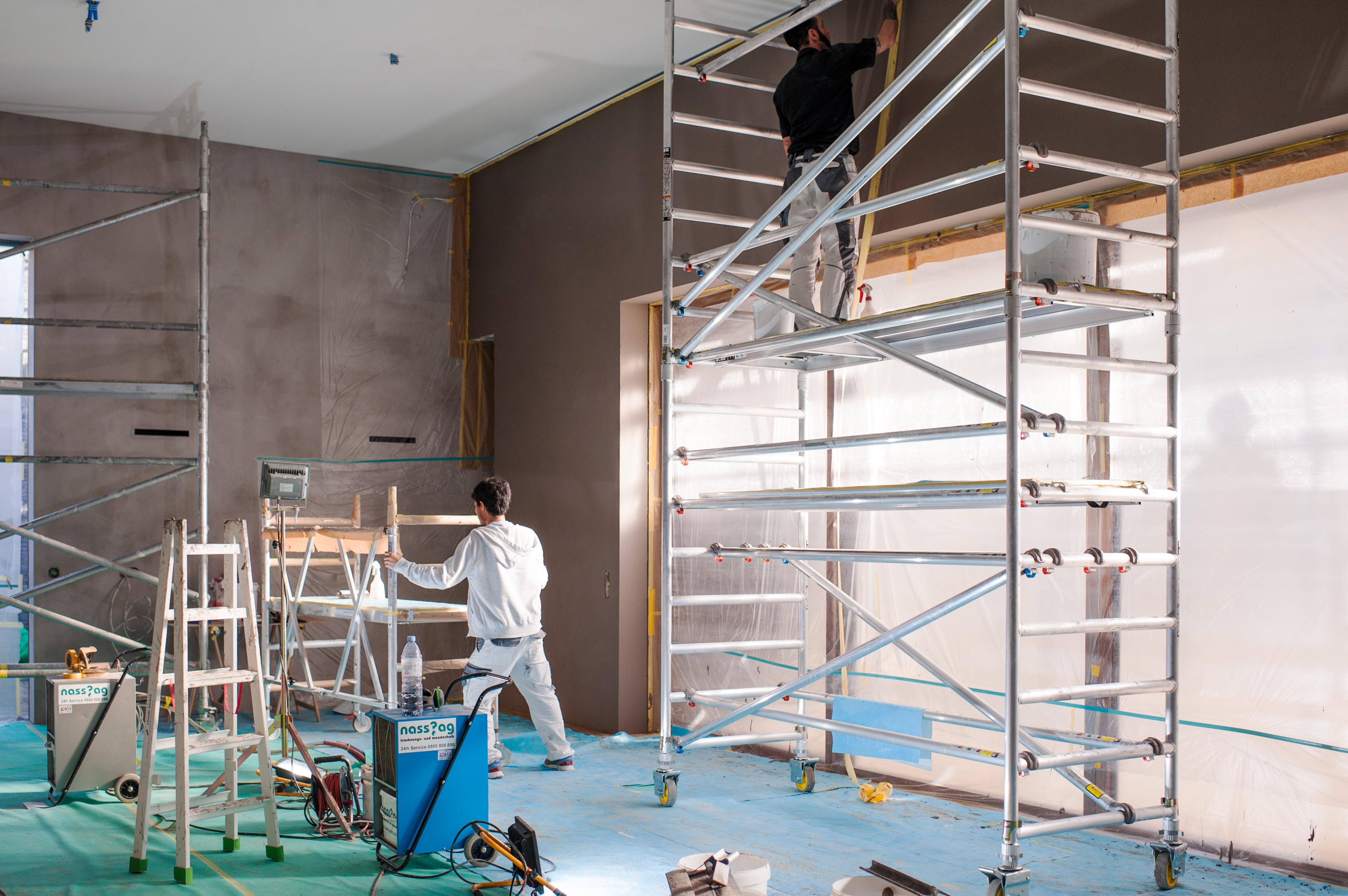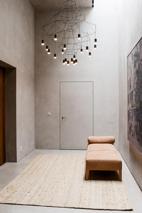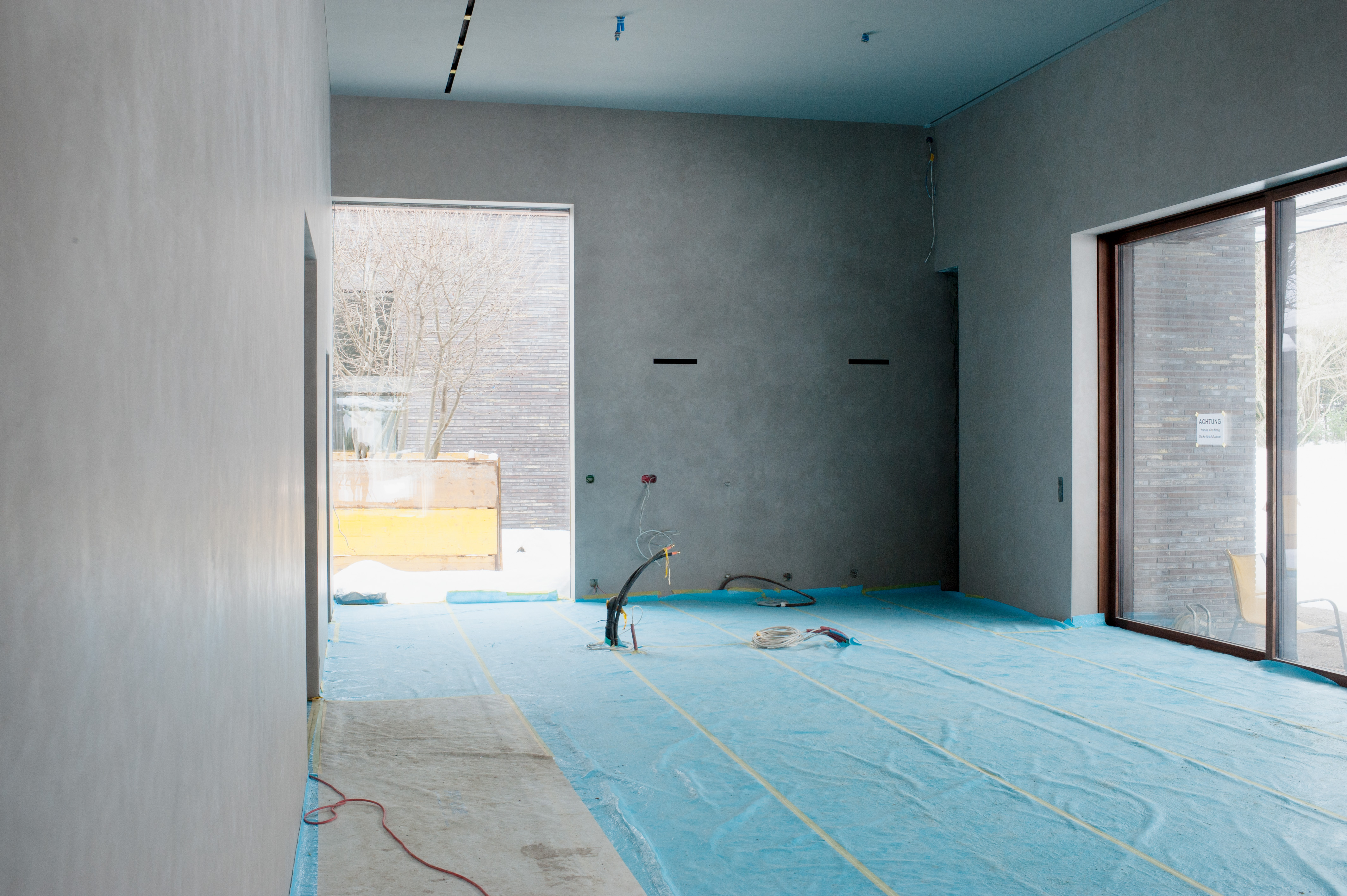 Für sämtliche Decken- und Wandoberflächen – insgesamt über 1'500 Quadratmeter – entschied sich die Bauherrschaft für den fugenlosen Terra di Pietra. Die Fussböden wurden alle in einem Hartbetonbelag ausgeführt.