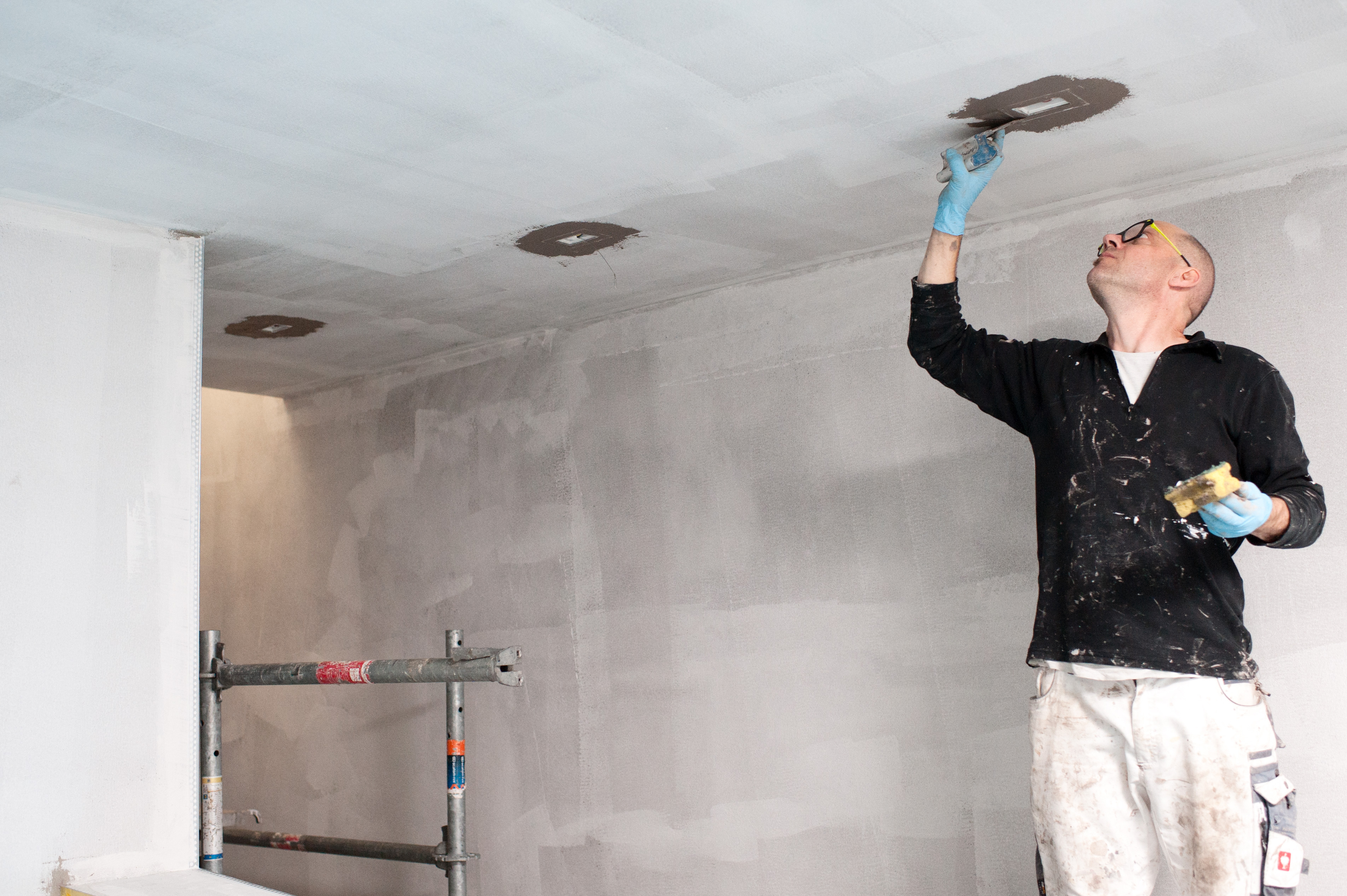 Die von uns konzipierten und von Spezialisten angefertigten Anschlussrahmen ermöglichen den problemlosen Einbau von Deckenspots, sodass der Kalkputz über die gesamte Fläche dieselbe Stärke aufweist.